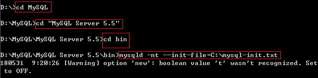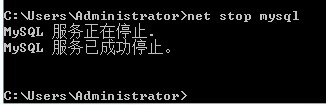 第一步:如果MySQL服务器正在运行,停止它 cmd->net stop mysql