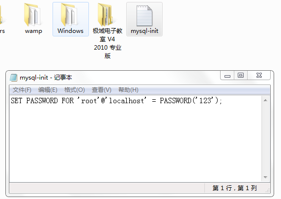 第二步:在C盘根目录下新建一个mysql-init.txt内容下下面命令