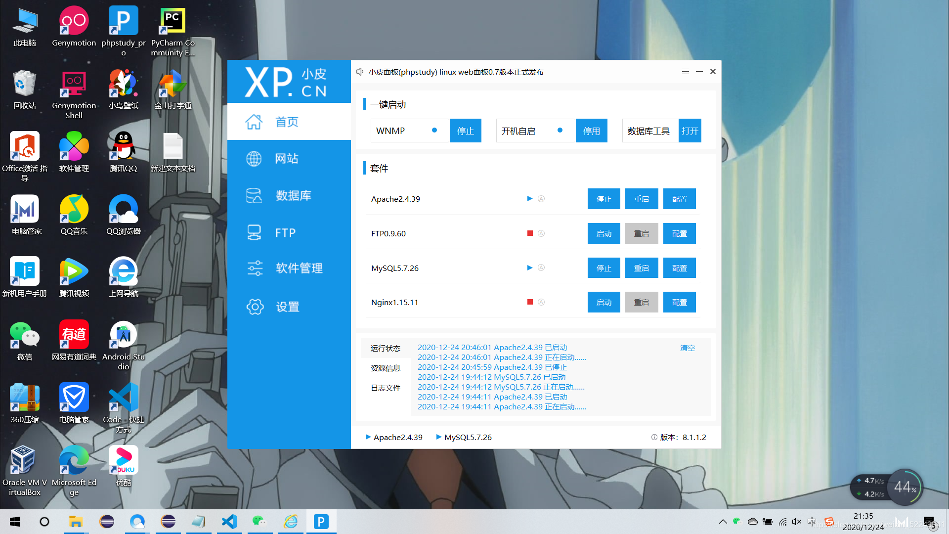 准备工作:先下载小皮面板,记住下载路径,在其中打开Apache和MySQL,然后我们步入正题