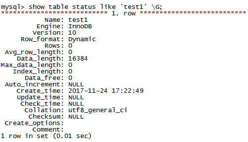 包含了其他额外信息,MyISAM 引擎(表),保存的是表在创建时已有的注释;innodb引擎(表),保存的是InnoDB表空间的剩余空间信息;如果是一个视图,该列(注释)里面包含了 VIEW 字样。